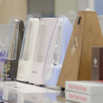 楽譜・書籍は、日頃のレッスンに必要な楽譜や話題のポピュラー楽譜、その他各種関連書籍に至るまで、常時15,000冊の在庫をご用意。在庫にない楽譜・書籍も迅速にお取り寄せいたします。 その他、各種お手入れ用品やレッスングッズ、見ているだけでも楽しい音楽関連ギフト、教育楽器まで豊富に取り揃えています。 皆様のご来店をスタッフ一同、心よりお待ちしております。