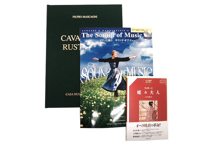 オペラ・アリア・ミュージカル有名オペラやミュージカルのヴォーカルスコアを始め、アリア集、オペラ対訳本もご用意しています。ヴォーカル・トレーニングや発声に関しての書籍も蔵書しています。
