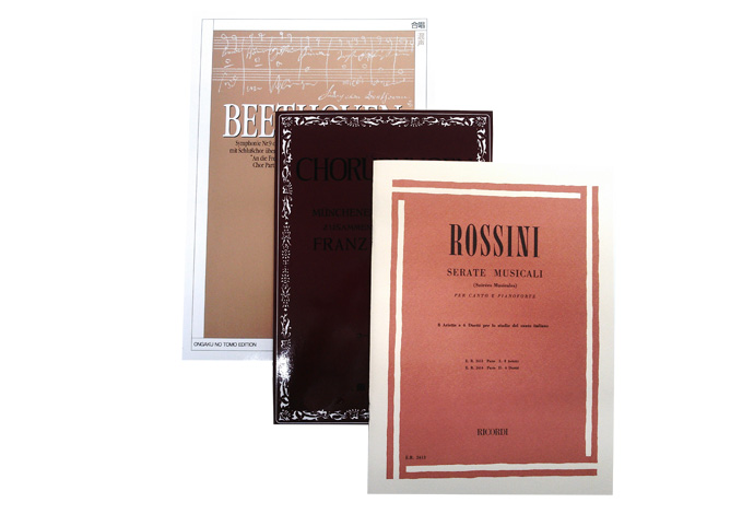声楽・合唱定番の声楽教本や歌曲、童謡、唱歌まで取り扱っています。特に合唱の品揃えは、多摩地域でも最大級の在庫量を誇ります。団体購入の場合はご注文も承ります。