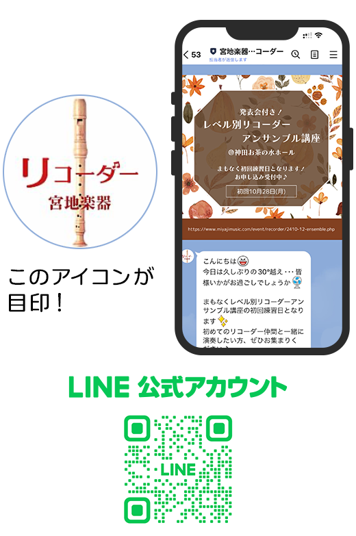「大合奏を楽しもう!」などリコーダーの参加型イベントの参加料、宮地楽器主催のイベント観覧の会員割引
