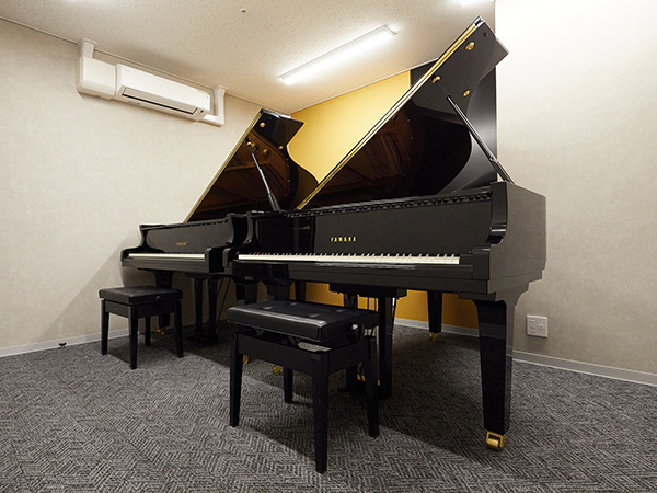 グランドピアノ2台設置した練習室や室内楽向けのレッスンルームレンタルは、
