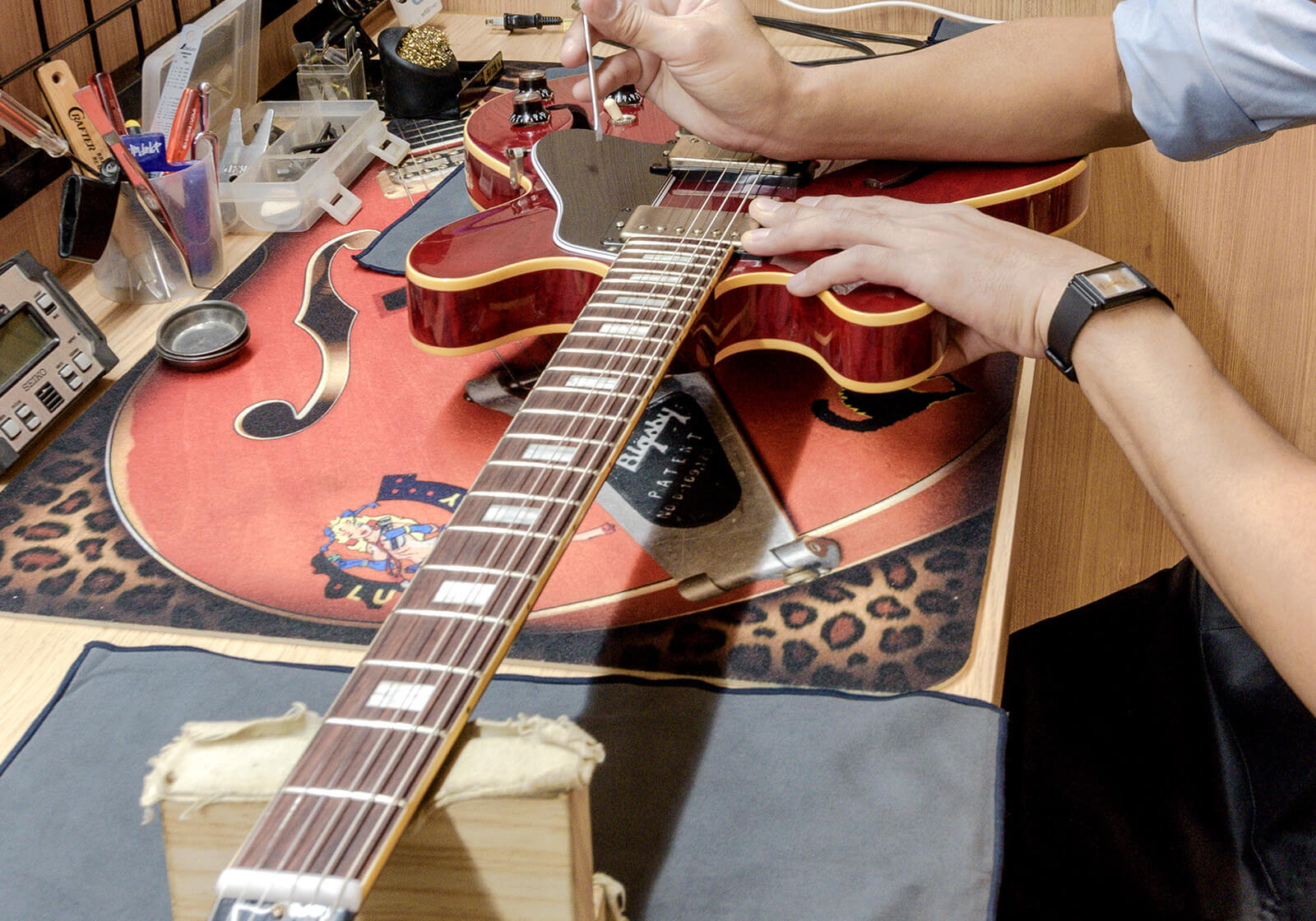 神田店・ららぽーと立川立飛店のギター・ベース担当までご相談ください。 弦交換・バランス調整から、こだわりのカスタマイズまで、お客様のニーズにお応えします。 修理費用お見積は無料で承ります。